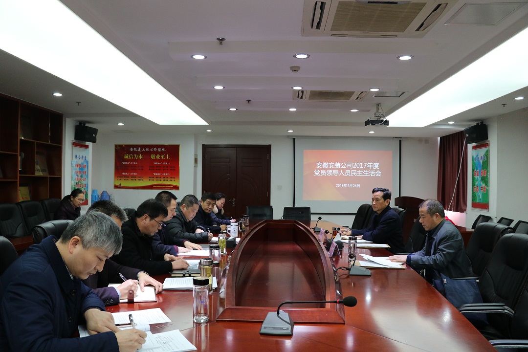 2月26日,安徽安裝公司召開2017年度黨員領(lǐng)導(dǎo)人員民主生活會。集團(tuán)公司黨委副書記牛曙東、黨委工作部主任徐文聯(lián)到會指導(dǎo)。會議由公司黨委書記、副總經(jīng)理胡六中主持,公司領(lǐng)導(dǎo)班子成員參加會議。