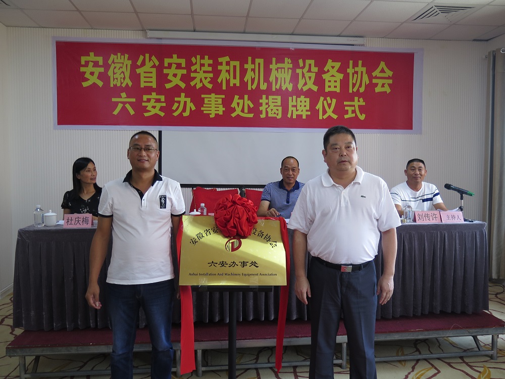 2018年9月5日,協(xié)會會長王軍邦、副會長李鵬飛、秘書長杜慶梅等一行參加了安徽省安裝和機械設備協(xié)會六安辦事處揭牌儀式暨交流會議,標志著六安辦事處正式成立。這是安徽省安裝和機械設備協(xié)會在全省范圍內成立的第一家辦事處。