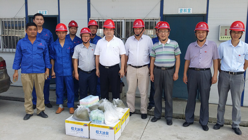 每到一個項目,公司領(lǐng)導(dǎo)都認真聽取了項目部施工現(xiàn)場情況詳細介紹,了解施工進度和下一步施工計劃,仔細詢問了現(xiàn)場防暑降溫工作的落實情況,對在炎熱天氣下仍在一線緊張工作的員工表示親切的問候,要求項目部合理安排好作息時間,避開高溫時的作業(yè),并把綠豆、白糖、毛巾、礦泉水、風油精、人丹、十滴水等防暑降溫用品親自送到他們的手中,叮囑大家一定要做好防暑降溫工作,在施工現(xiàn)場多配備防暑降溫飲品及藥品,采取各種有效措施,確保員工的身體健康和施工安全。