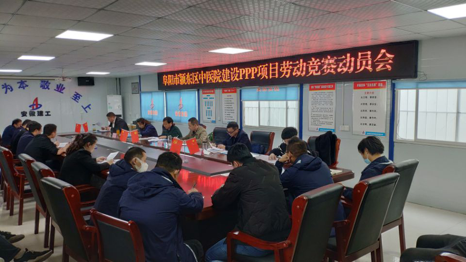 4月8日下午,阜陽市潁東區(qū)中醫(yī)院建設PPP項目部召開2020年勞動競賽動員會。公司黨委書記、董事長胡六中,副總經(jīng)理高飛,紀委書記、工會主席李寬旭及公司相關部門人員、房建(裝飾)分公司班子成員及項目部員工參會,會議由分公司黨支部副書記張曼主持。