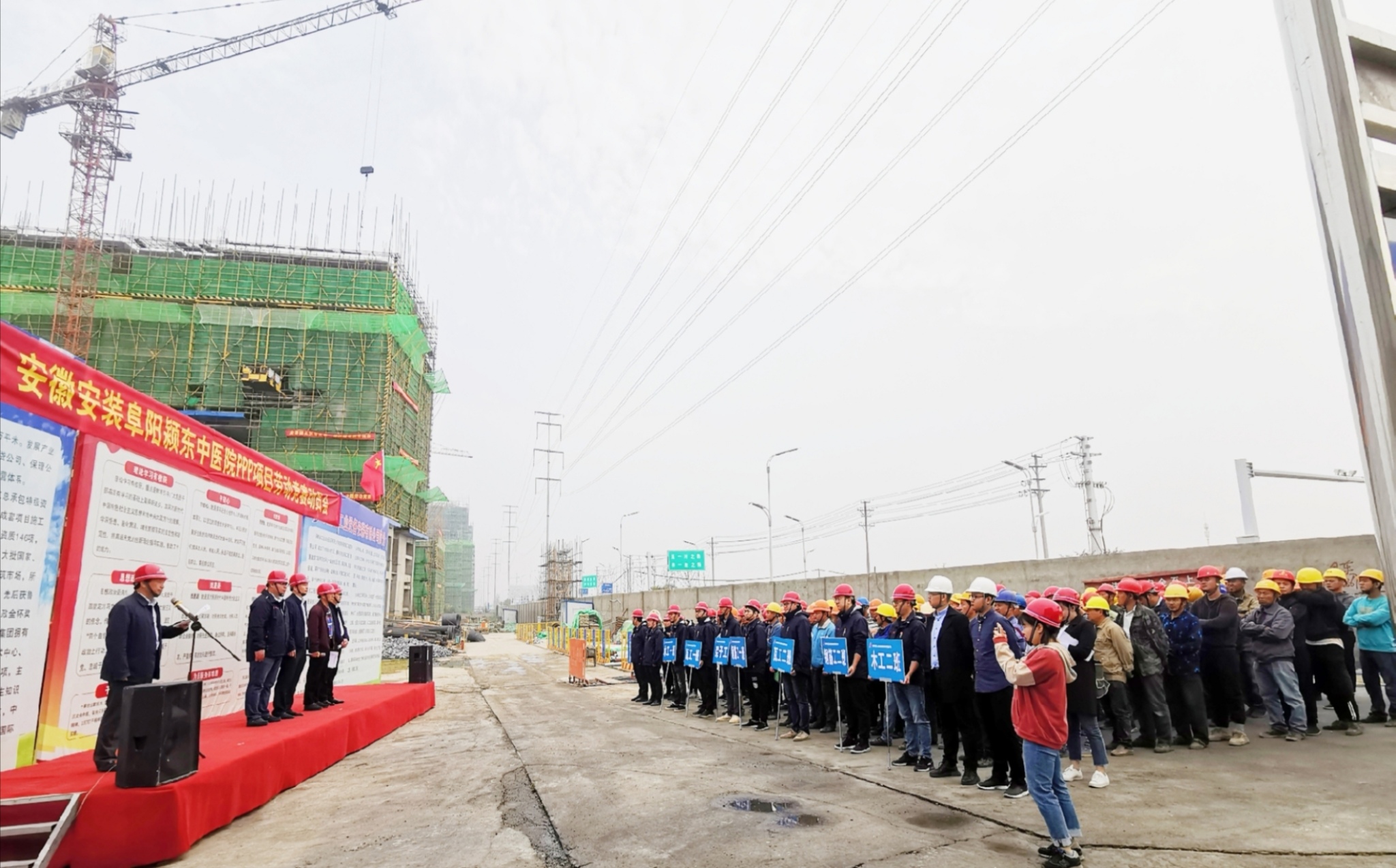 為確保年度各項(xiàng)目目標(biāo)任務(wù)順利完成,貫徹落實(shí)集團(tuán)公司開展“搶進(jìn)度、保工期、穩(wěn)預(yù)期、促提升”為主題勞動(dòng)競(jìng)賽活動(dòng)精神,2019年10月11日上午,安徽安裝召開阜陽(yáng)潁東區(qū)中醫(yī)院PPP項(xiàng)目“大干四季度”勞動(dòng)競(jìng)賽動(dòng)員大會(huì)。公司副總經(jīng)理高飛,紀(jì)委書記、工會(huì)主席李寬旭,總工程師吳繼成,公司相關(guān)部門負(fù)責(zé)人、項(xiàng)目管理人員和施工班組共120多人參加了競(jìng)賽動(dòng)員會(huì)。