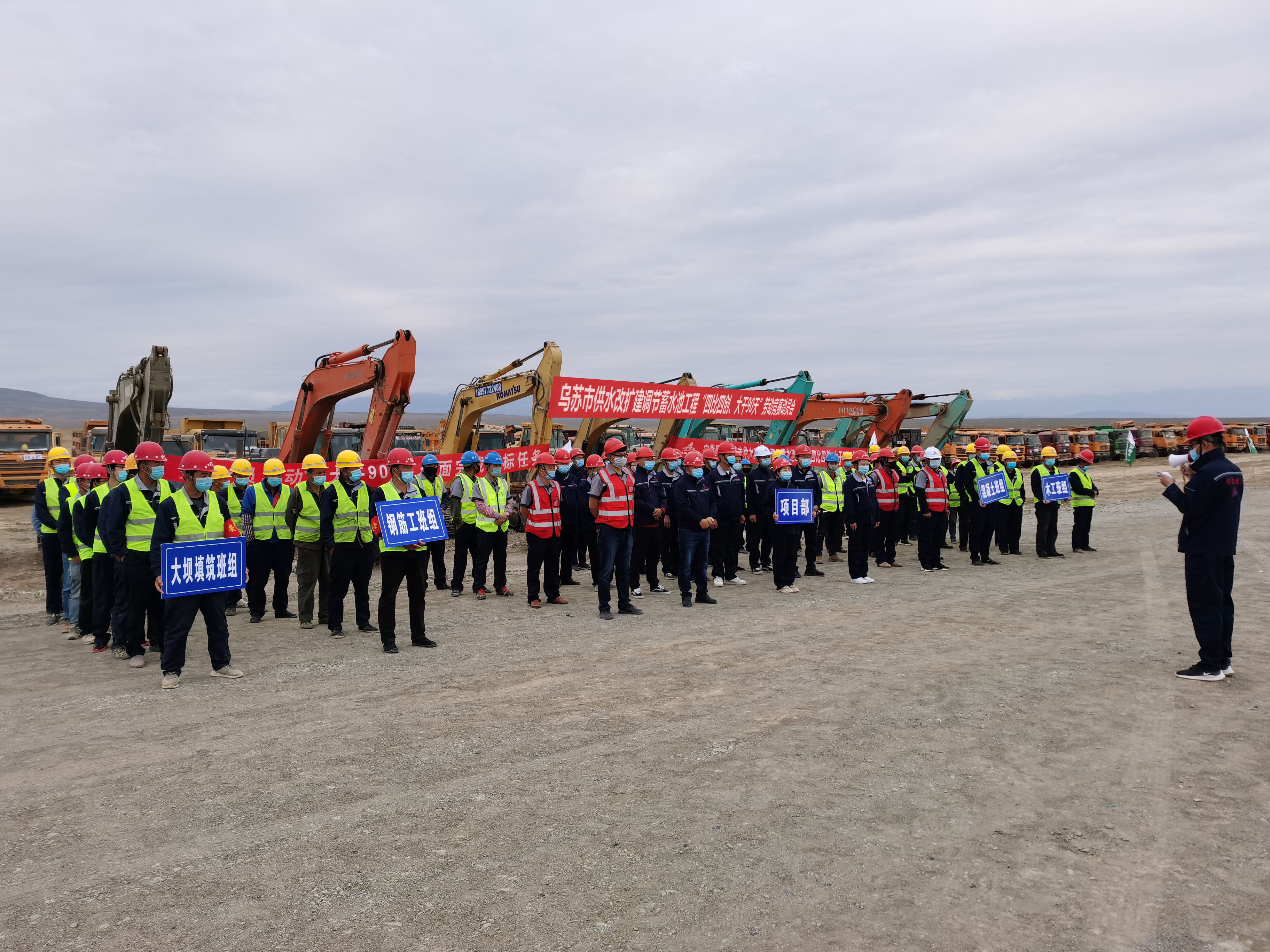 為確保年度各項(xiàng)目目標(biāo)任務(wù)順利完成,貫徹落實(shí)集團(tuán)和公司兩級(jí)職代會(huì)精神,充分發(fā)揮員工“主人翁”的作用,調(diào)動(dòng)員工工作的主動(dòng)性和積極性,以快速、優(yōu)質(zhì)、安全、高效圓滿完成工程任務(wù)。5月6日上午,安徽安裝召開(kāi)烏蘇市供水改擴(kuò)建調(diào)節(jié)蓄水池工程項(xiàng)目“四比四創(chuàng)、大干90天”勞動(dòng)競(jìng)賽動(dòng)員會(huì)。公司副總經(jīng)理王軍,新疆烏蘇分公司領(lǐng)導(dǎo)班子成員、項(xiàng)目管理人員和施工班組共131人參加了競(jìng)賽動(dòng)員會(huì)。