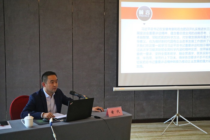 課上,黃代從四個(gè)方面宣傳貫徹了習(xí)近平總書記在安徽考察重要講話精神。一是提高政治站位,充分認(rèn)識(shí)習(xí)近平總書記考察安徽重要講話指示的重大意義。習(xí)近平總書記考察安徽重要講話指示精辟論述了我省當(dāng)前和未來(lái)發(fā)展的一系列方向性、根本性問(wèn)題,在安徽發(fā)展史上具有極其重大的里程碑意義,習(xí)近平總書記專程視察中國(guó)寶武馬鋼集團(tuán)時(shí)發(fā)表的重要講話,也為我們做好國(guó)企工作提供了思想武器、指明了前進(jìn)方向、注入了強(qiáng)大動(dòng)力。全體黨員領(lǐng)導(dǎo)干部要按照省委、省國(guó)資委統(tǒng)一要求,堅(jiān)持全面系統(tǒng)學(xué)、融會(huì)貫通學(xué)、聯(lián)系實(shí)際學(xué),確保深刻領(lǐng)會(huì)重大意義。二是把握核心要義,深刻領(lǐng)會(huì)習(xí)近平總書記考察安徽重要講話指示的精神實(shí)質(zhì)。“兩個(gè)堅(jiān)持”“兩個(gè)更大”,是總書記講話的核心要義,深刻回答了“十四五”乃至今后一個(gè)時(shí)期安徽發(fā)展在黨和國(guó)家全局中應(yīng)該承擔(dān)的使命、肩負(fù)的任務(wù),將安徽的發(fā)展層次、工作要求提升到前所未有的高度,是當(dāng)前和今后一個(gè)時(shí)期引領(lǐng)安徽發(fā)展的總方針、總遵循。三是聚焦重點(diǎn)任務(wù),切實(shí)答好加快美好安徽建設(shè)和集團(tuán)高質(zhì)量發(fā)展的必答題。全體黨員干部職工要深刻領(lǐng)悟全省領(lǐng)導(dǎo)干部“12個(gè)必答題”和安徽建工集團(tuán)“10個(gè)必答題”,緊扣目標(biāo)要求和各項(xiàng)任務(wù),謀深謀實(shí)貫徹落實(shí)的具體思路、促進(jìn)發(fā)展的實(shí)際舉措、推動(dòng)工作的保障機(jī)制。四是營(yíng)造濃厚氛圍,全面掀起學(xué)習(xí)貫徹習(xí)近平總書記考察安徽重要講話熱潮。安徽安裝公司要以“大學(xué)習(xí)”“大宣傳”“大調(diào)研”“大落實(shí)”為抓手,確保對(duì)重要講話精神融會(huì)貫通、入腦入心、明晰思路、落地見(jiàn)效。