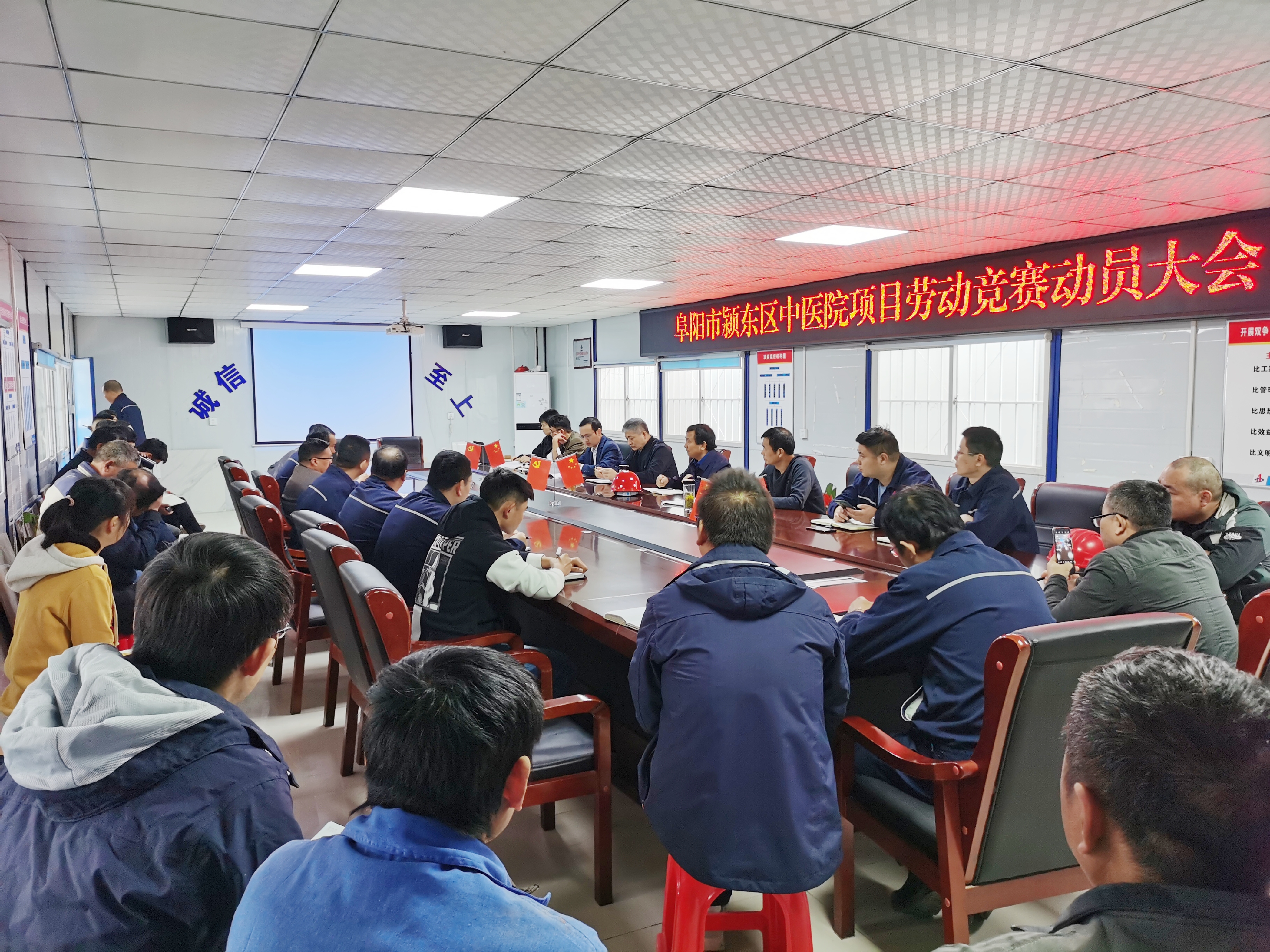 為確保年度各目標(biāo)任務(wù)順利完成,貫徹落實(shí)集團(tuán)公司開展“戰(zhàn)疫情、搶工期、保目標(biāo)、促超產(chǎn)”為主題勞動(dòng)競賽活動(dòng)精神,2020年11月5日上午,安徽安裝召開阜陽潁東區(qū)中醫(yī)院建設(shè)PPP項(xiàng)目“大干90天,確保2021年春節(jié)前二層以上工程量全部完工”勞動(dòng)競賽動(dòng)員會(huì)。公司副總經(jīng)理高飛,紀(jì)委書記、工會(huì)主席李寬旭,總工程師吳繼成,公司相關(guān)部門負(fù)責(zé)人、項(xiàng)目管理人員和施工班組長共40多人參加了競賽動(dòng)員會(huì)。