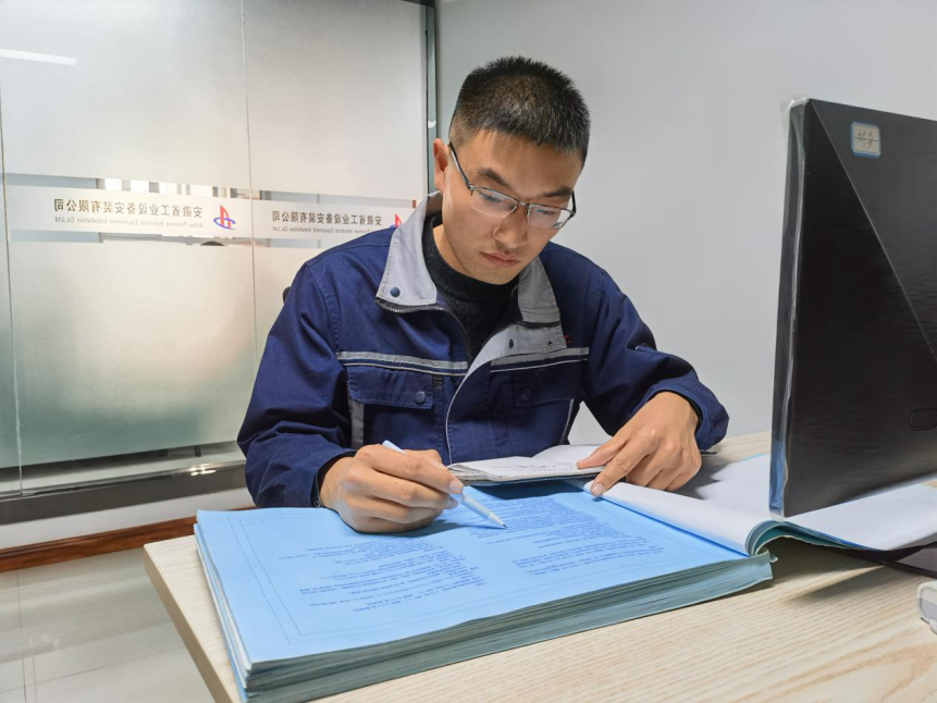 張天(安全員):非常感謝王軍的榜樣作用,他為人正派,處事公道,涉獵廣泛,面面俱到。工作之余,他總會擠出自己的休息時間,來指導我們的學習,耐心講解規(guī)范、各節(jié)點現(xiàn)場施工檢查要點、安全文明施工檢查要點等等。通過學習,我們更加自信,更好的完成自己的工作。“不積跬步,無以至千里;不積小流,無以成江海”。講責任,講擔當,無需豪言壯語,無需驚天壯舉,只需放眼當前,從本職工作做起,從一點一滴做起,為安徽安裝大家庭貢獻自己的一份力量!事不避難,責任在心,擔當在行,奮勇向前。