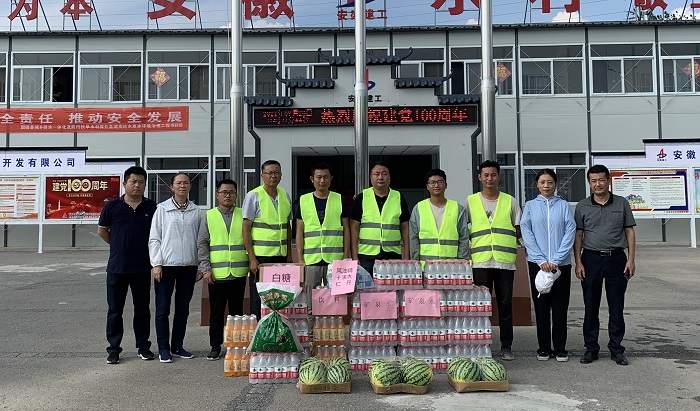 為做好高溫天氣下項(xiàng)目施工防暑降溫工作,切實(shí)保障項(xiàng)目一線職工的安全健康,確保安全生產(chǎn)工作順利展開,7月15日以來合肥分公司領(lǐng)導(dǎo)班子成員分別前往宿州新宇藥業(yè)、靈璧迎賓大道、固鎮(zhèn)三八河景觀工程、潛山高鐵站前廣場等各在建項(xiàng)目現(xiàn)場,開展夏日“送清涼”慰問活動,為現(xiàn)場一線工作人員送去防暑降溫慰問物資,并對酷暑天氣仍然堅守在一線施工作業(yè)人員表示親切的關(guān)心和問候。