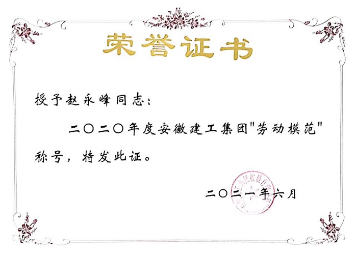 2019年3月,根據(jù)安徽安裝公司拓展市場、加快發(fā)展的工作要求,趙永峰勇挑重?fù)?dān),擔(dān)負(fù)起了合肥分公司“開拓市場一片天”的重任,團(tuán)結(jié)帶領(lǐng)分公司班子成員和全體員工立足新起點(diǎn)、整裝再出發(fā),努力為實(shí)現(xiàn)分公司新一輪大發(fā)展而不懈奮斗,取得的可喜成績得到了領(lǐng)導(dǎo)和員工們的一致認(rèn)可和稱贊。受到安徽建工集團(tuán)及安徽省工業(yè)設(shè)備安裝有限公司的表彰,在2021年7月1日-2日召開的安徽建工集團(tuán)控股有限公司二屆一次職工代表大會暨“七一”表彰會上,趙永峰同志作為集團(tuán)勞動模范代表光榮的上臺授獎。