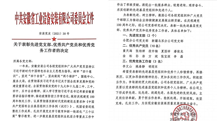今年以來,趙永峰同志以黨史學(xué)習(xí)教育和慶祝中國共產(chǎn)黨成立100周年為契機(jī),以集團(tuán)黨建“領(lǐng)航計(jì)劃”為抓手,創(chuàng)新型開展支部黨建工作,多措并舉,勠力同心,真抓實(shí)干,積極探索項(xiàng)目黨建工作新載體、新途徑,以深入開展創(chuàng)先爭優(yōu)“黨員示范崗”等主題實(shí)踐活動為載體,以“我為群眾辦實(shí)事”實(shí)踐活動帶領(lǐng)支部班子成員創(chuàng)造性地開展一系列黨建工作,用實(shí)際行動踐行初心使命,用真抓實(shí)干檢驗(yàn)黨史學(xué)習(xí)教育成效。積極發(fā)揮了“一名黨員就是一面旗幟,一個(gè)支部就是一座堡壘”的重要作用。他所在合肥分公司被建工集團(tuán)授予“先進(jìn)集體”光榮稱號,合肥分公司黨支部被安徽省工業(yè)設(shè)備安裝有限公司黨委評為“先進(jìn)黨支部”。趙永峰同志榮獲安徽建工集團(tuán)“勞動模范”等多項(xiàng)榮譽(yù)稱號。