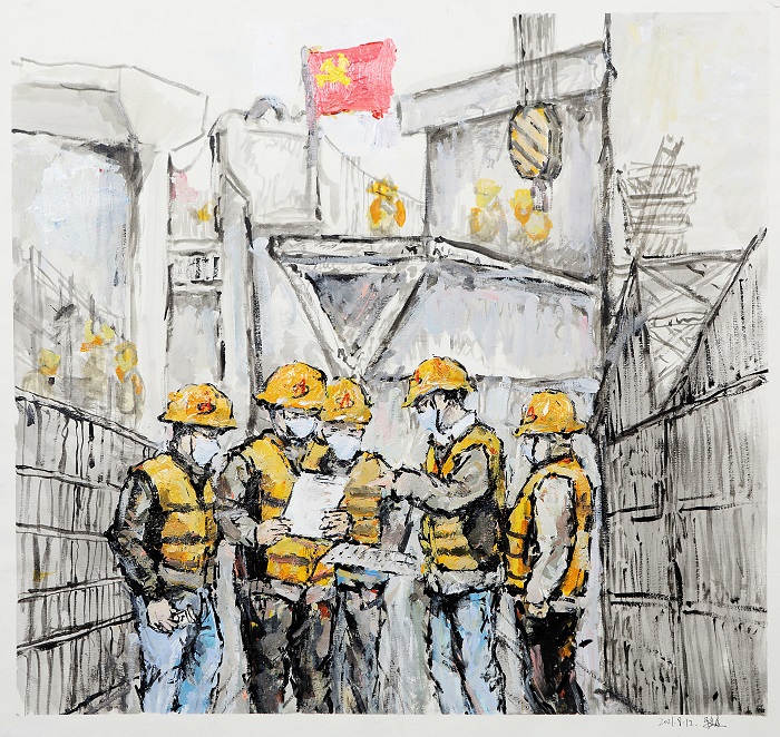 繪畫(huà)類(lèi):馬金鑫——油畫(huà)《支部建在項(xiàng)目上》