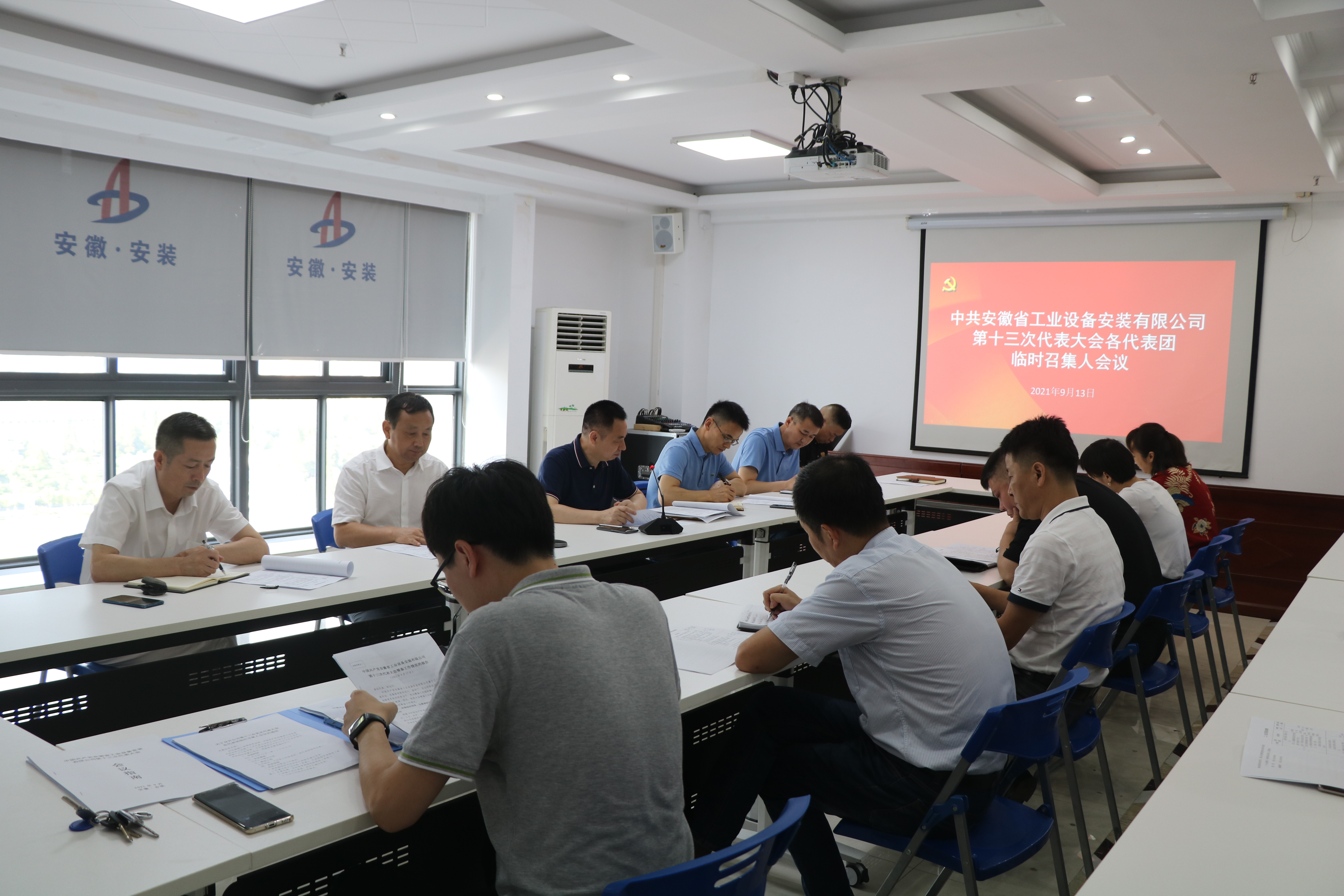 9月13日下午,安徽安裝公司召開第十三次黨代會各代表團(tuán)臨時召集人會議,公司領(lǐng)導(dǎo)班子成員、各代表團(tuán)臨時召集人及各工作組組長參會。黨委書記、董事長胡六中主持會議。