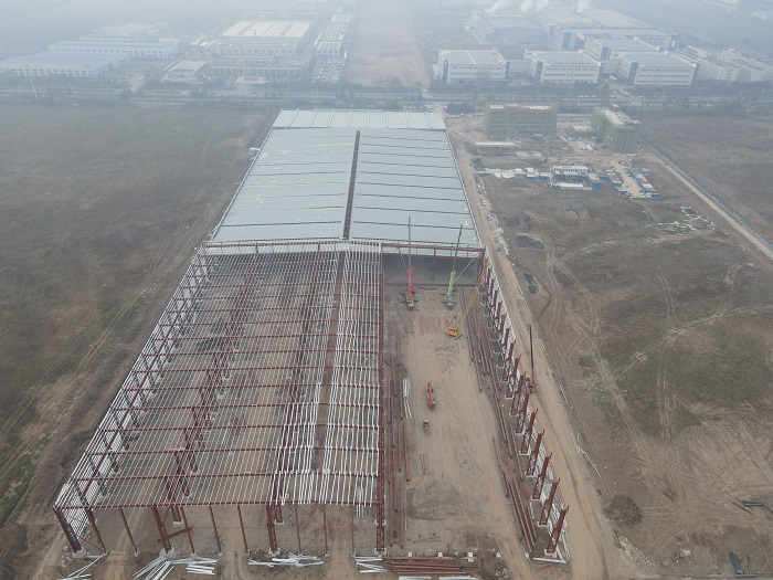 由合肥分公司承建的安徽建工智能鋼構項目正在緊張施工中,現(xiàn)主體架構已初現(xiàn)雛形。11月17日上午,項目部“50米跨屋面梁吊裝”工作正在進行,公司總工程師吳繼成現(xiàn)場指導吊裝工作,并為第一榀屋面梁進行掛紅儀式。公司總經(jīng)理助理、合肥分公司經(jīng)理、黨支部書記趙永峰,公司總工辦、安全部等相關部門負責同志參加。