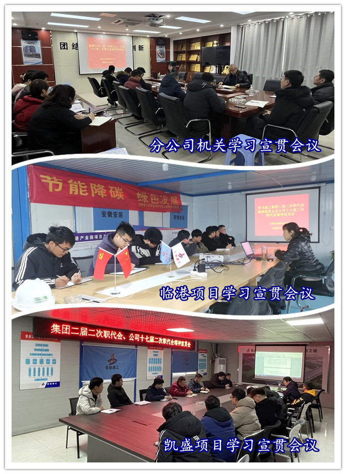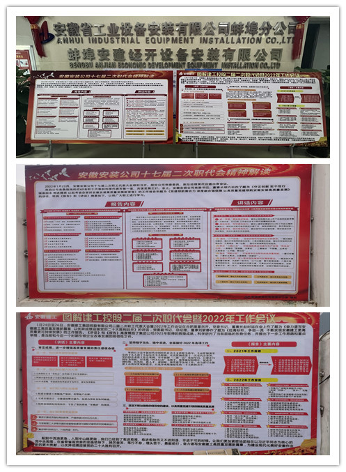 2月10日—11日,在分公司機(jī)關(guān)和各在建項(xiàng)目一線召開兩級(jí)職代會(huì)精神專題宣貫會(huì)。會(huì)議由分公司黨支部書記程茂麗主持。會(huì)上,程茂麗首先傳達(dá)了集團(tuán)公司黨委書記、董事長(zhǎng)趙時(shí)運(yùn)在集團(tuán)二屆二次職代會(huì)暨2022年度工作會(huì)議作的題為《奮力譜寫安徽建工高質(zhì)量發(fā)展新篇章 以優(yōu)異成績(jī)迎接黨的二十大勝利召開》的講話和集團(tuán)黨委副書記、總經(jīng)理、董事劉家靜作的題為《拉高標(biāo)桿、爭(zhēng)創(chuàng)一流 不斷實(shí)現(xiàn)安徽建工更高質(zhì)量更可持續(xù)發(fā)展》的工作報(bào)告;隨后又帶領(lǐng)大家深入解讀了公司黨委書記、董事長(zhǎng)胡六中在公司十七屆二次職代會(huì)上所作的《守正創(chuàng)新 實(shí)干篤行 強(qiáng)基固本 競(jìng)進(jìn)提質(zhì) 以趕考姿態(tài)答好安徽安裝高質(zhì)量發(fā)展新答卷》的報(bào)告及《黨建領(lǐng)航聚合力 深度融合強(qiáng)保障 以高質(zhì)量黨建領(lǐng)航安徽安裝高質(zhì)量發(fā)展》的講話。
