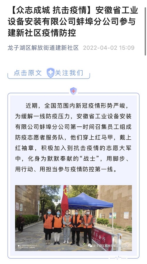 “疫”不容辭、志愿有我 ——蚌埠分公司黨支部開展疫情防控志愿服務(wù)活動(dòng)
