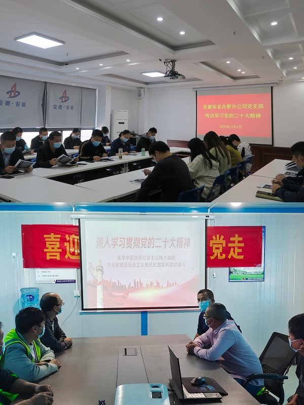 11月2日,安徽安裝合肥分公司黨支部召開黨員大會,專題學(xué)習(xí)黨的二十大精神。分公司黨支部堅持黨建引領(lǐng),把學(xué)習(xí)好、宣貫好黨的二十大精神作為當(dāng)前和今后一個時期的首要政治任務(wù),通過班子理論學(xué)習(xí)會、支部“三會一課”、黨員活動日等多種形式,以及微信公眾號、網(wǎng)站、宣傳欄、橫幅標(biāo)語等多種載體,加大對黨的二十大精神宣貫力度,弘揚(yáng)偉大建黨精神,用先進(jìn)的理論武裝頭腦,指導(dǎo)實踐,推動工作,以優(yōu)異的成績推動黨的二十大精神在基層落地生根、開花結(jié)果,為推動安徽安裝“十四五”高質(zhì)量發(fā)展而不懈努力。