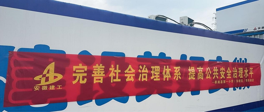 項目部懸掛宣傳橫幅、擺放宣傳展板