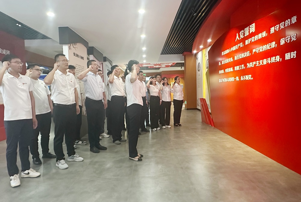活動期間,分公司黨支部書記、副經(jīng)理程茂麗帶領(lǐng)支部全體黨員集體重溫入黨誓詞。全體黨員面向黨旗舉起右拳,用錚錚誓言宣誓不忘初心使命為黨的事業(yè)奮斗的決心。