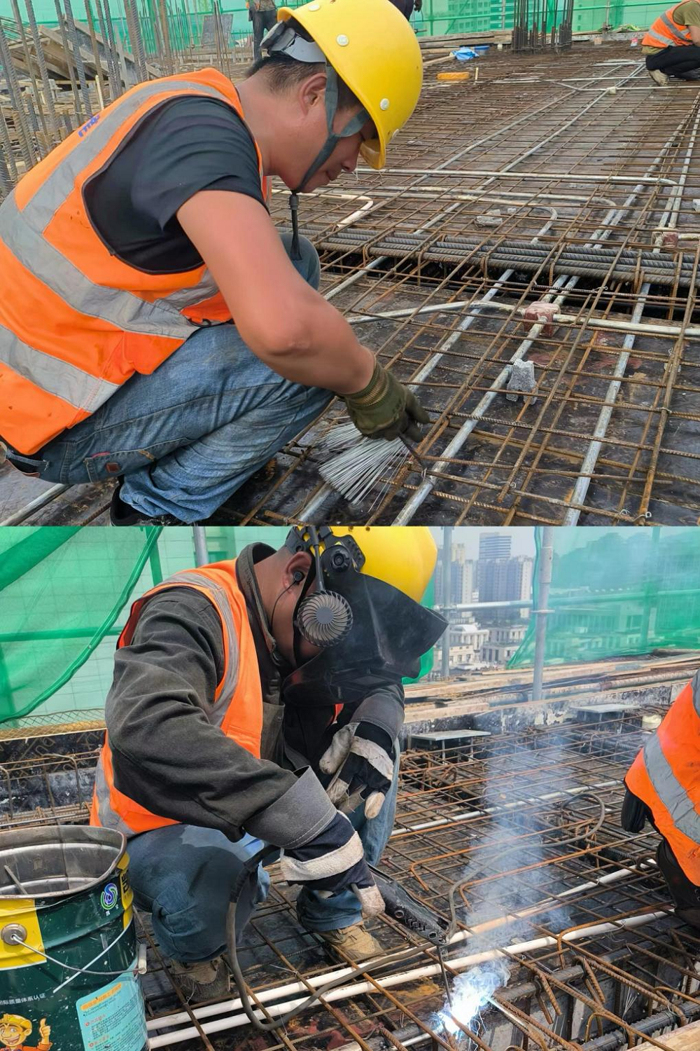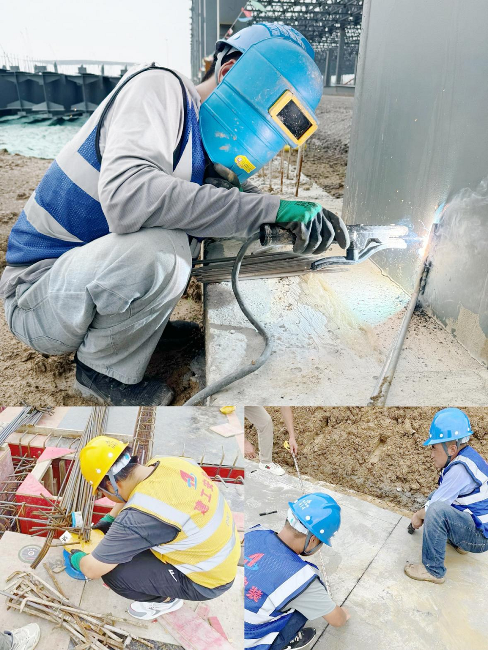 無懼“烤”驗,蜀山經(jīng)濟產(chǎn)業(yè)園水電安裝項目的工人們?nèi)褙炞⒌剡M行著電氣配管預(yù)埋固定,接地跨接焊接,滾燙的鋼筋、汗?jié)竦囊路忈屩胰障碌?0分“熟”。