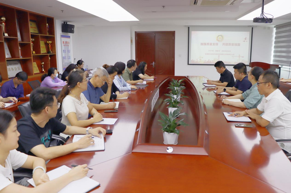 在啟動儀式上,分公司經(jīng)理夏國祥傳達了建工安裝《關(guān)于開展2024年“質(zhì)量月”活動的通知》精神,并對分公司質(zhì)量月各項活動進行布置和安排,他要求分公司全體員工要緊緊圍繞“質(zhì)量月”主題,樹立質(zhì)量第一的強烈意識;要對工程項目的質(zhì)量進行分析和總結(jié),針對質(zhì)量存在的問題、難點與痛點,確定質(zhì)量攻關(guān)課題,通過組織開展質(zhì)量攻關(guān)等各項“質(zhì)量月”活動,規(guī)范項目質(zhì)量管理行為,加強全面質(zhì)量管理,不斷提升質(zhì)量管控水平。