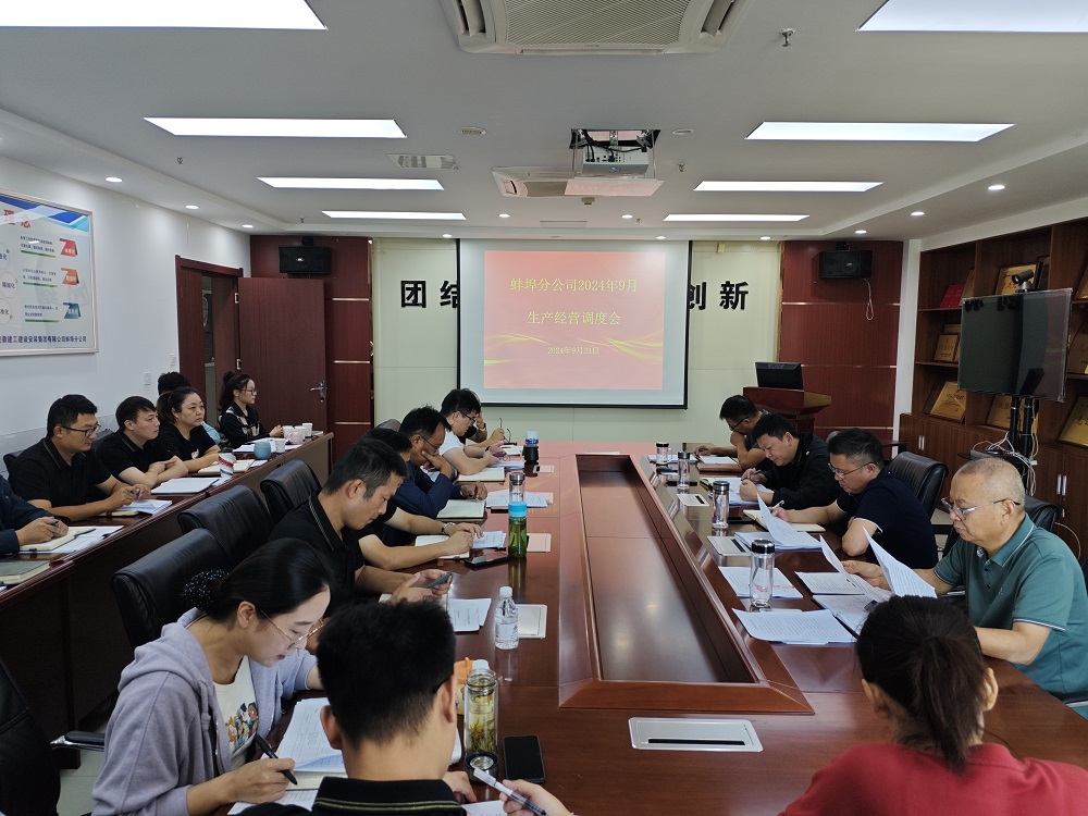 9月23日上午,蚌埠分公司組織召開9月份生產(chǎn)經(jīng)營調(diào)度會,分公司領(lǐng)導(dǎo)班子成員、所屬各項目部、機關(guān)各部門負責人及工程管理部全體員工參加會議,會議由分公司副經(jīng)理張斌主持。