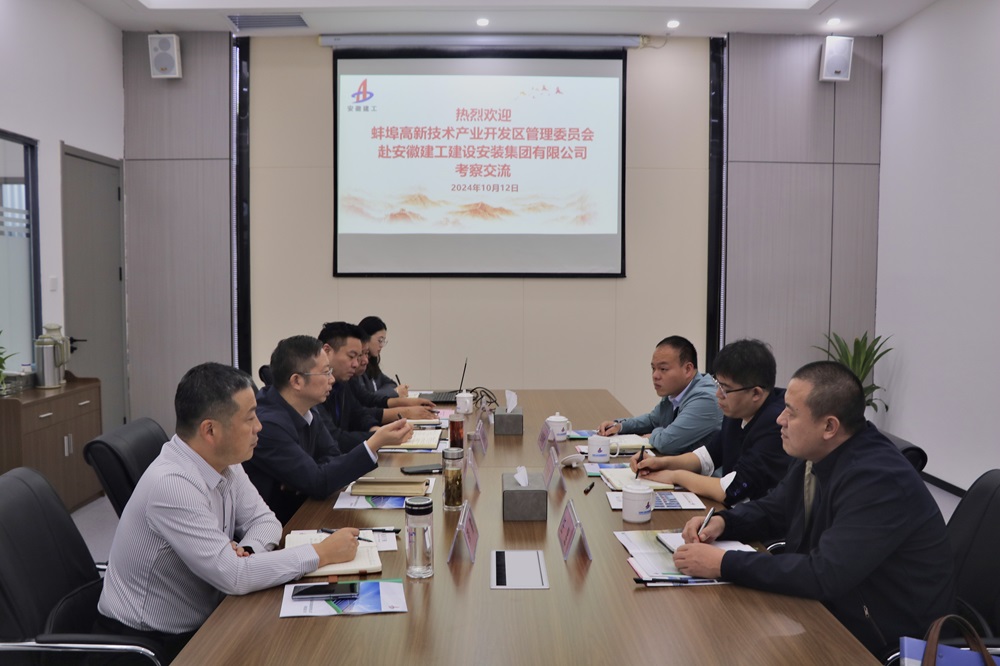 會(huì)上,朱珍宏重點(diǎn)介紹了安徽建工集團(tuán)三大戰(zhàn)略布局基本情況以及建工安裝集團(tuán)發(fā)展歷程、業(yè)務(wù)范圍、核心競爭優(yōu)勢(shì)等;方浩亮分享了蚌埠高新區(qū)和自貿(mào)區(qū)在電子信息、高端制造和新材料新能源等領(lǐng)域所取得的成就與獨(dú)特技術(shù)優(yōu)勢(shì)。雙方重點(diǎn)圍繞產(chǎn)業(yè)投資、園區(qū)建設(shè)、技術(shù)創(chuàng)新、光伏儲(chǔ)能方面充分交換意見,為下一步合作打下堅(jiān)實(shí)的基礎(chǔ)。
