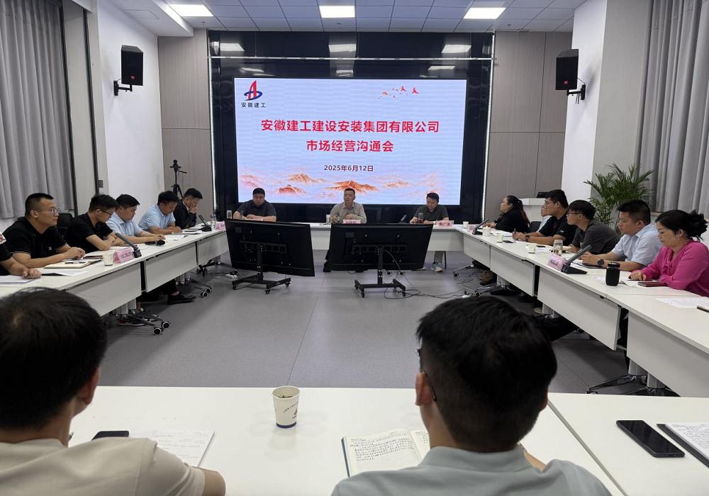 6月12日下午,建工安裝召開市場經營溝通會,公司黨委委員、副總經理劉曉剛、費廣清出席會議,市場開發(fā)和投資部經理許杰主持會議。
