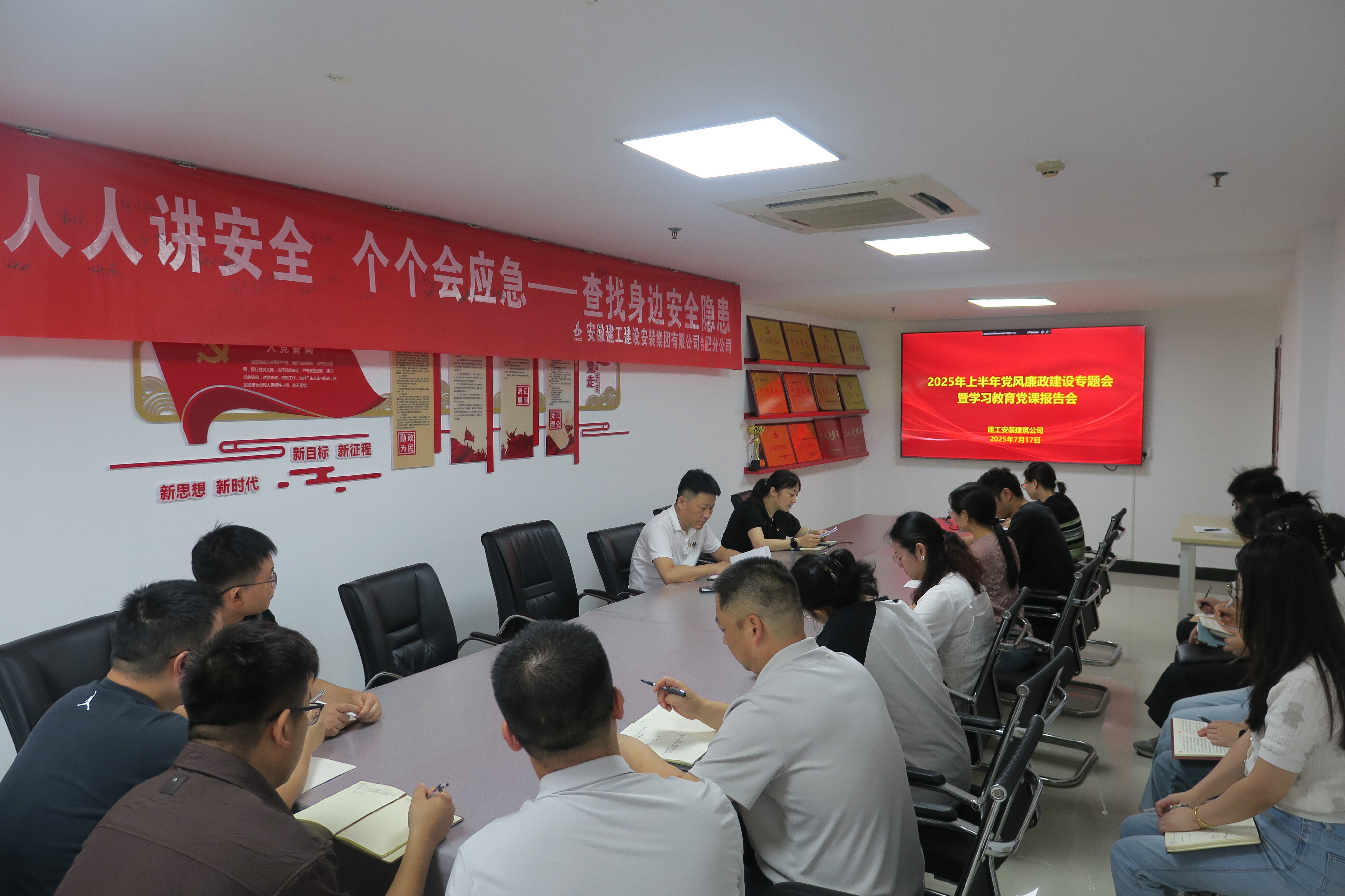 7月17日上午,建工安裝建筑公司召開2025年上半年黨風廉政建設(shè)專題會暨學(xué)習教育黨課報告會,建筑公司領(lǐng)導(dǎo)班子、部門負責人、各項目主要負責人、支部黨員參加會議。