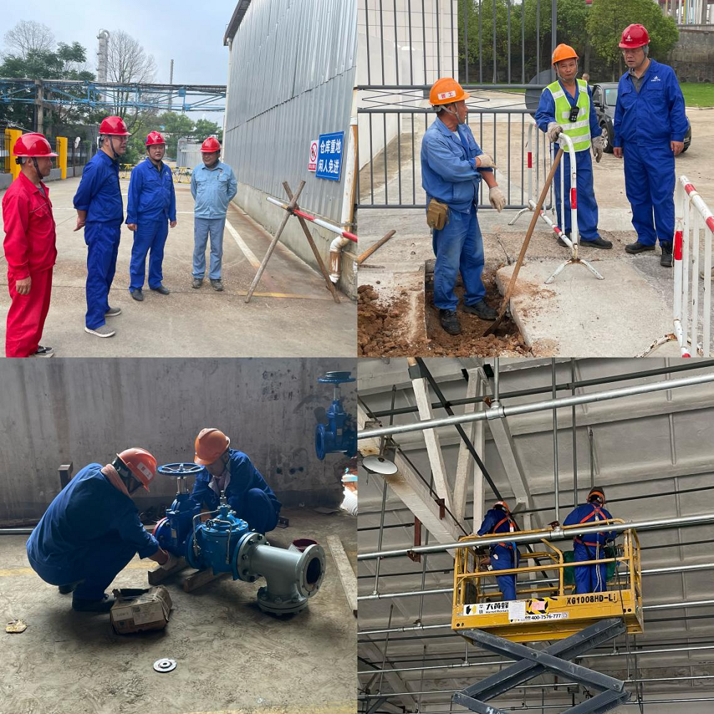 抵達(dá)安慶石化腈綸短纖成品庫(kù)及腈綸總降消防設(shè)施隱患整改倉(cāng)庫(kù)區(qū)域,“倉(cāng)庫(kù)重地 閑人免進(jìn)” 的標(biāo)識(shí)醒目懸掛,現(xiàn)場(chǎng)管理氛圍嚴(yán)謹(jǐn)。在此區(qū)域,市政公司領(lǐng)導(dǎo)與項(xiàng)目人員展開交流,圍繞項(xiàng)目管理機(jī)制、安全防護(hù)落實(shí)等關(guān)鍵事項(xiàng)進(jìn)行詳細(xì)詢問,深入了解現(xiàn)場(chǎng)運(yùn)營(yíng)細(xì)節(jié),在倉(cāng)庫(kù)內(nèi)部,施工人員正開展作業(yè)。在設(shè)備安裝區(qū)域,工人專注投入各類閥門及關(guān)鍵部件的預(yù)制工作,每一個(gè)操作步驟均嚴(yán)謹(jǐn)細(xì)致,嚴(yán)格遵循技術(shù)要求。而在高空作業(yè)區(qū)域,施工人員依托升降平臺(tái)規(guī)范作業(yè),各項(xiàng)安全措施落實(shí)到位,充分彰顯出良好的施工規(guī)范意識(shí)與安全生產(chǎn)意識(shí)。
