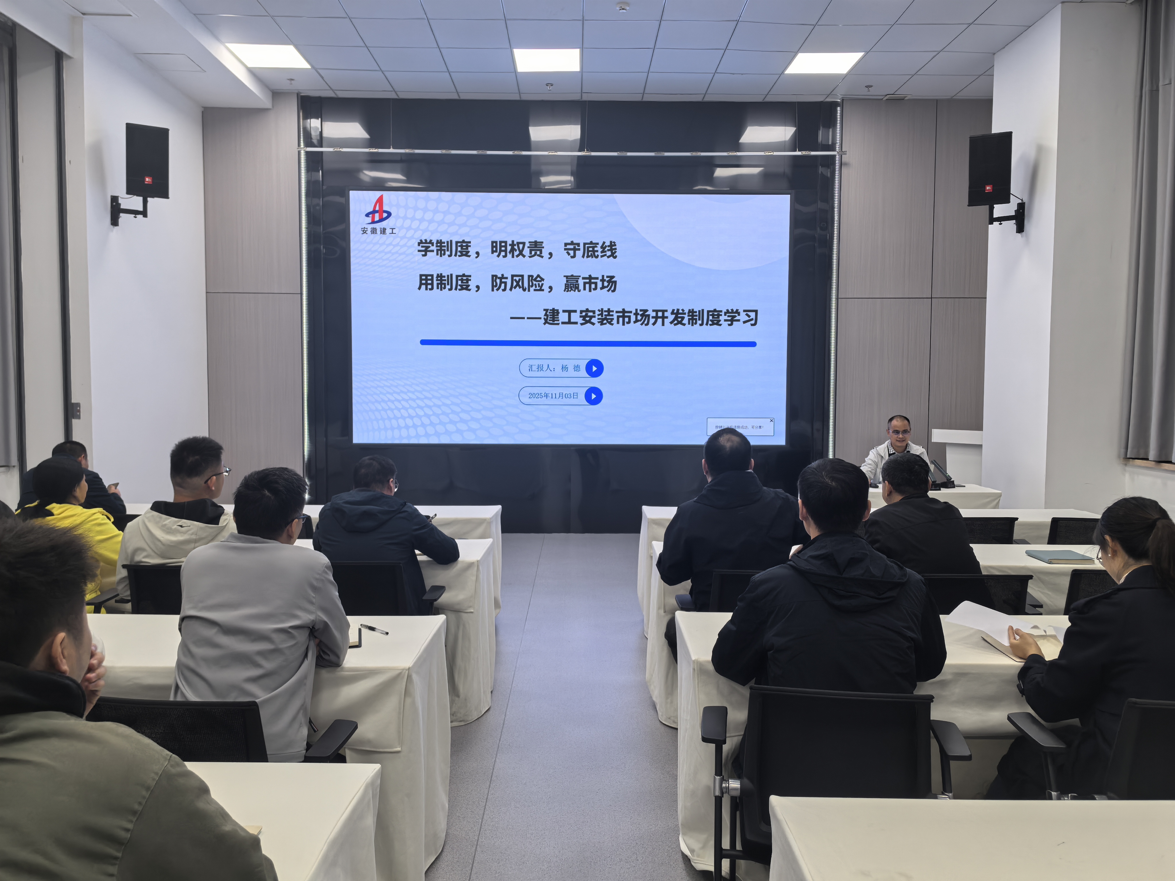 11月3日晚,建工安裝第三十二期機(jī)關(guān)部門大學(xué)堂在公司第一會(huì)議室舉行。本次培訓(xùn)由市場(chǎng)開發(fā)和投資部楊德主講,機(jī)關(guān)全體職工參會(huì)。